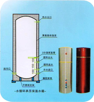 1、水循環(huán)系列,采用特殊雙層結(jié)構(gòu),水箱不混水,熱水利用率高: